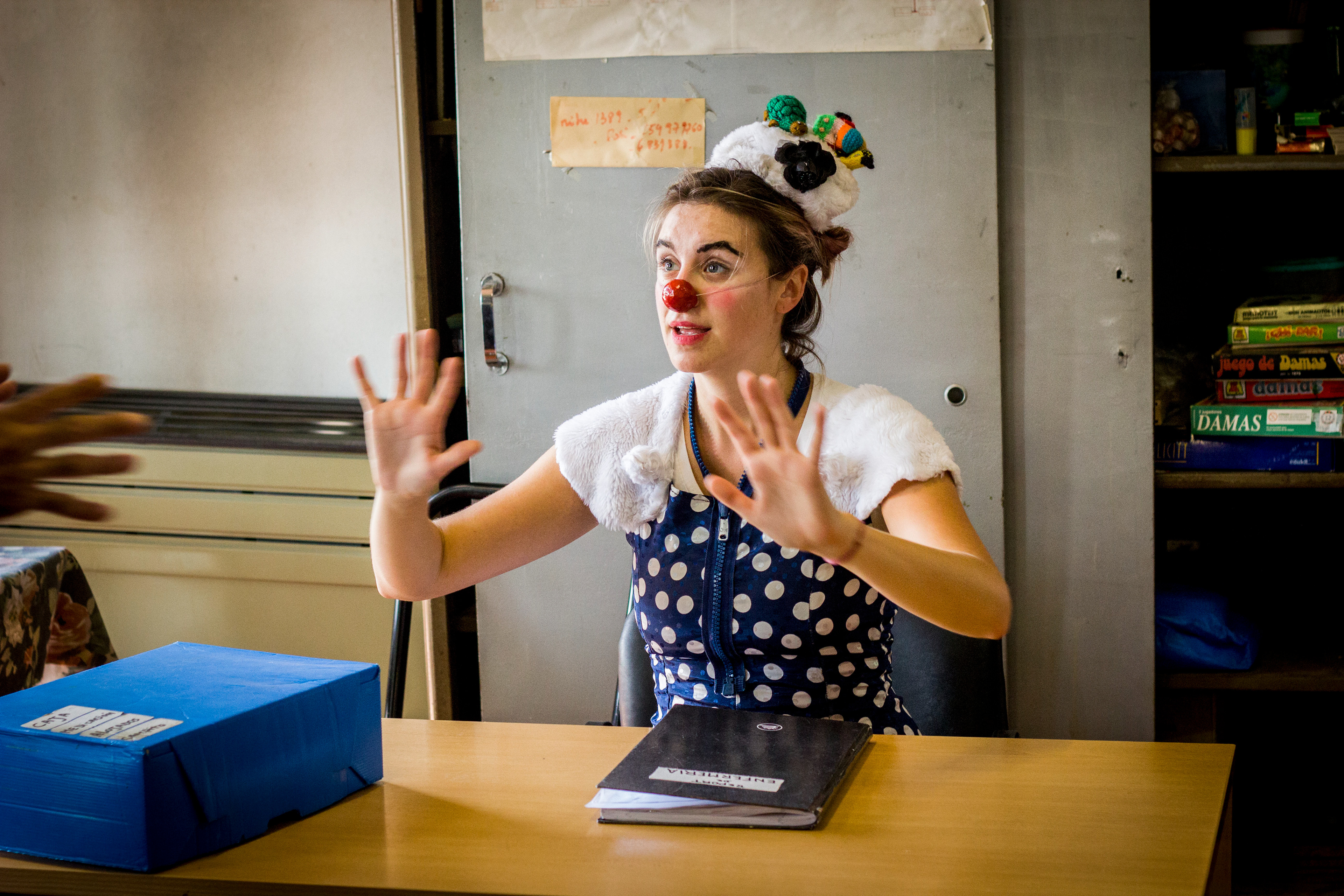 La propuesta del taller es generar herramientas para que tú payasx, se pueda desarrollar en la calle en un teatro, en un circo, en un hospital, en cualquier espacio que defina como escenario. La escena teatral se puede montar hasta en un rinconcito oscuro, creando así un escenario y cada persona (público) q este en ese juego, empieza a ser parte de nuestro “propio teatro”, por ende, su realidad comienza a transformarse. Este Clown está en estado de juego y tiene e deseo de lograr que cada participante se contagie, busca complicidad para así poder divertirse, sumergirse a vivir e imaginar otras posibles realidades.